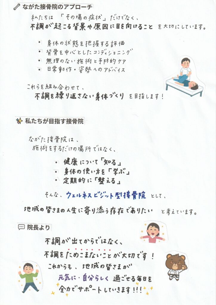 今月は、ながた接骨院の目指すものをお伝えいたします。